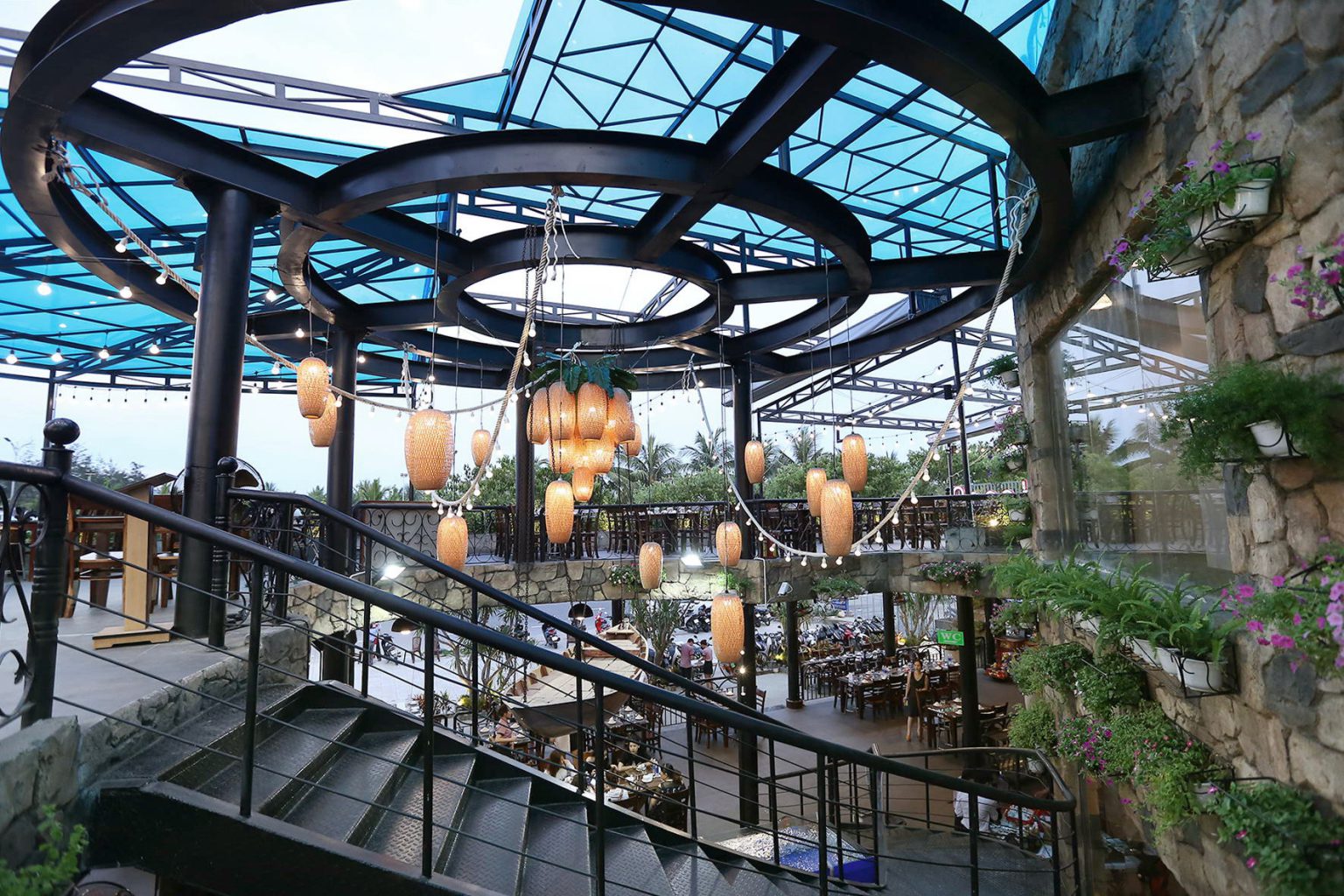 Với diện tích khoảng 1000m2, sức chứa lên tới 400 khách cho thấy mức độ rộng lớn của nhà hàng hải sản Đà Nẵng đẳng cấp 4 sao này. Không gian được thiết kế giống như một làng chài mini thu nhỏ cùng với khu vực chỗ ngồi ngoài trời khiến cho thực khách như được lạc vào cuộc sống thường nhật của người dân làng chài, tạo cảm giác thi vị nhất khi thưởng thức hải sản Đà Nẵng ngay trong khung cảnh tự nhiên, bình dị. Ngoài ra còn có khu vực phòng VIP dành cho các đoàn khách muốn có không gian riêng.